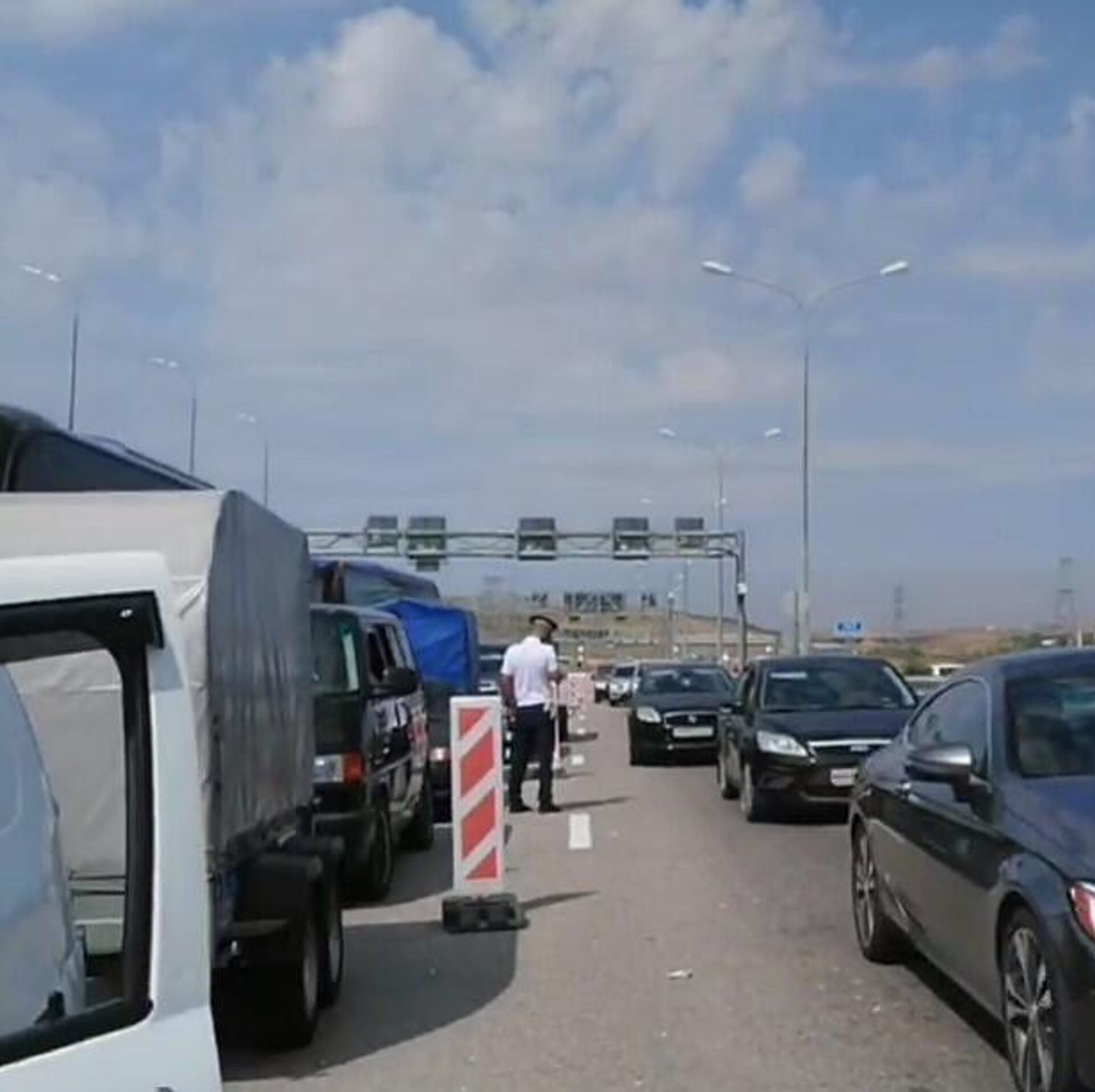 Очереди на Крымском мосту растянулись на несколько километров с обеих сторон. Волонтеры раздают водителям и пассажирам воду, сотрудники ГАИ регулируют... РИА Новости Крым, 07.08.2025
