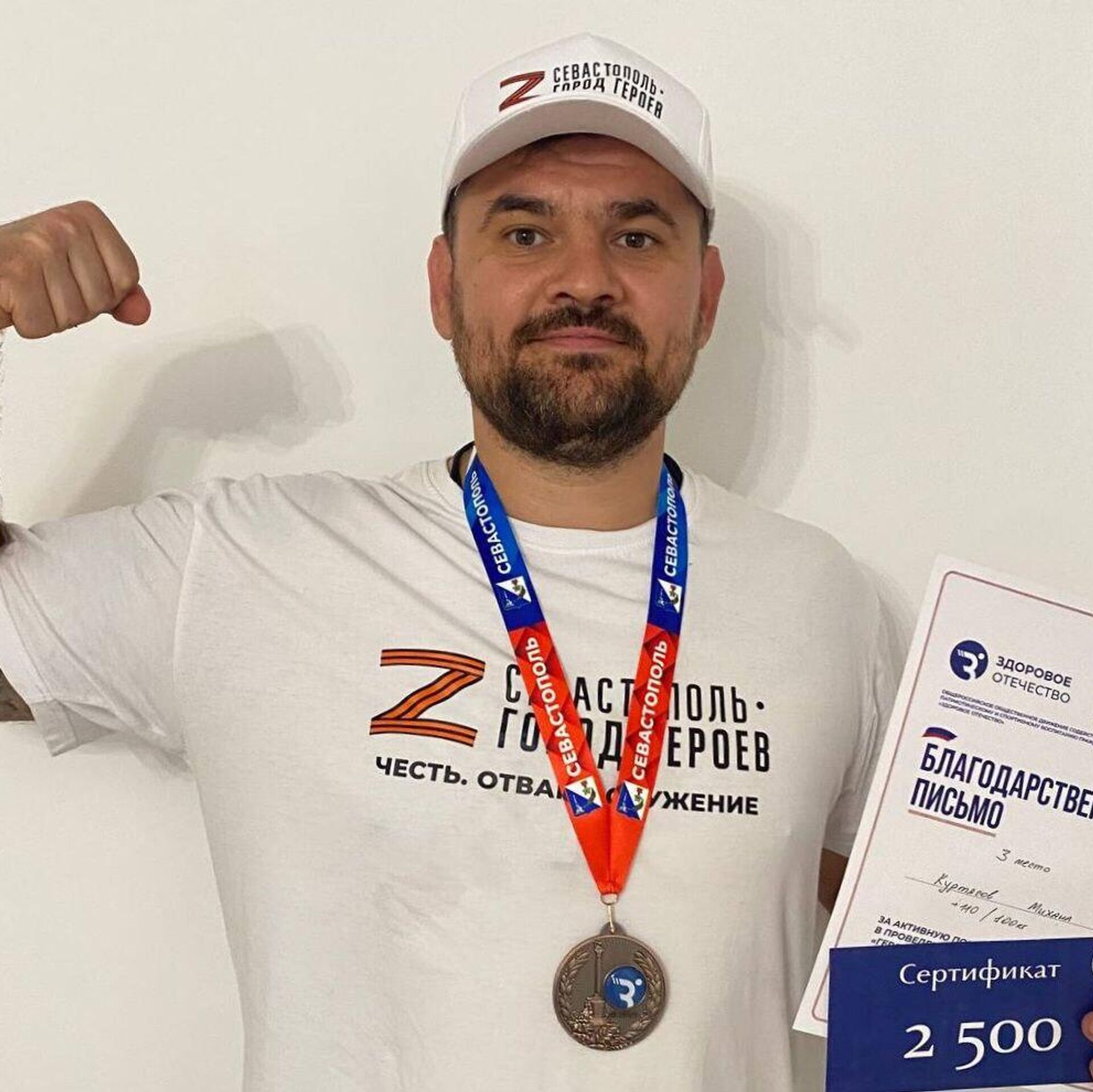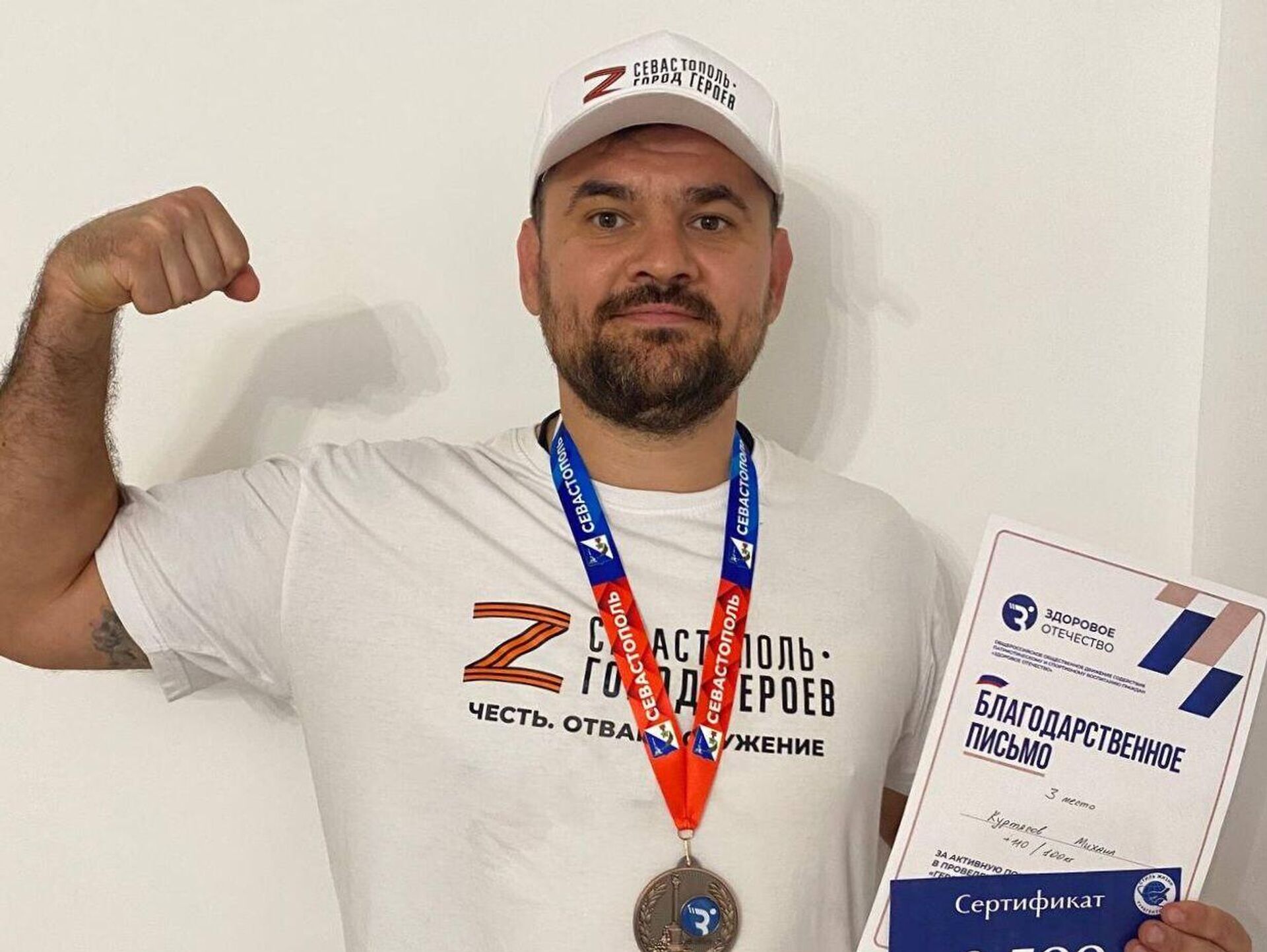 "Участник программы "Севастополь – город Героев" Михаил Куртасов, завоевал бронзовую медаль по пауэрлифтингу... занял почетное 3-место с результатом 110 кг", – сообщил Развожаев в своем Telegram-канале.